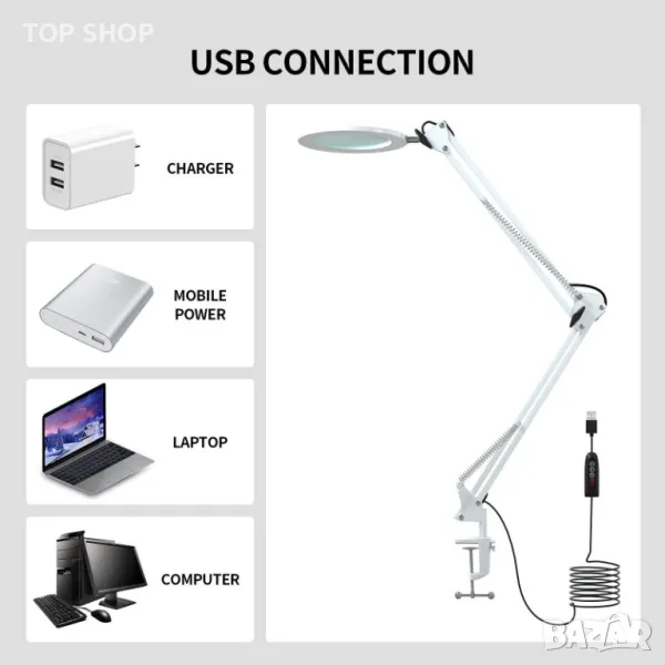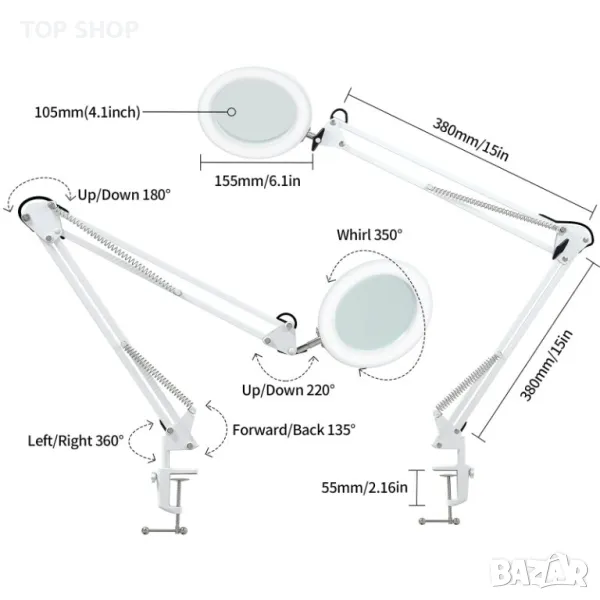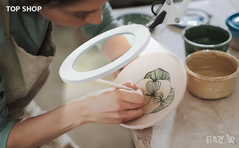 Led работна лампа с Лупа Beyamz Увеличително стъкло за маникюр и козметика