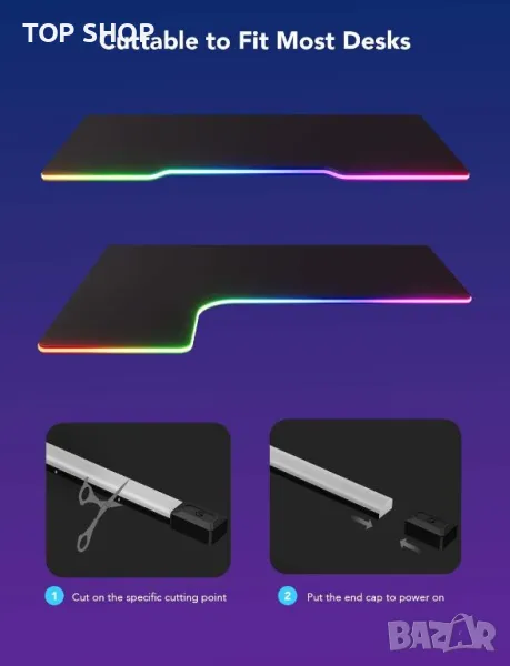 Възможност за рязане: Светлините за игрални ленти могат да бъдат изрязани на 12 специфични точки за рязане и преоразмерени, за да осигурят перфектно прилягане към повечето бюра. Използваемата дължина на всяка светлинна лента е между 7,03 фута и 10 фута. Забележка: Светлината не може да се снажда.