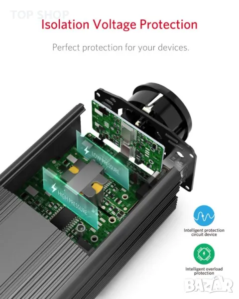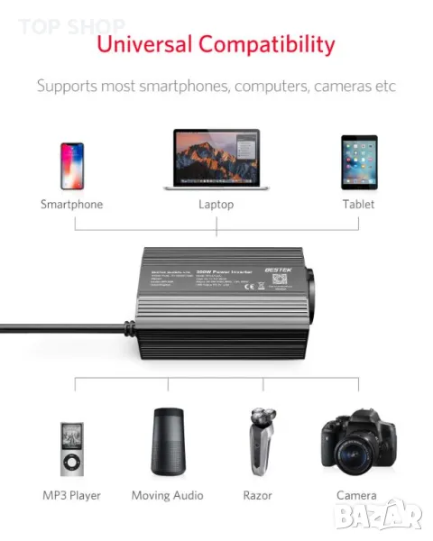 Първият в света инвертор на Amazon. 1 ЕС захранващ контакт, идеален за захранване на лаптопи, телевизори, вентилатори, DVD, GPS, осветление, музикални инструменти, слънчеви панели или други електронни устройства.