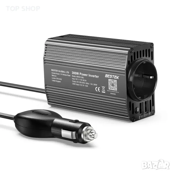 Преобразувател на напрежение Bestek 12 V към 230 V 300 W инвертор автомобилен инвертор с TÜV