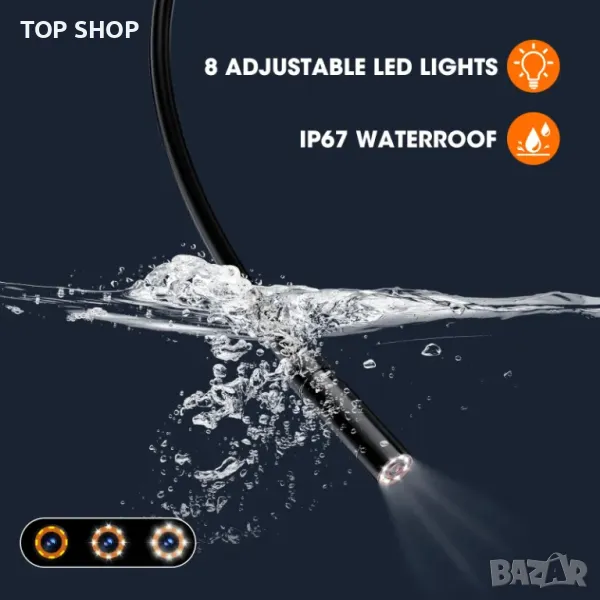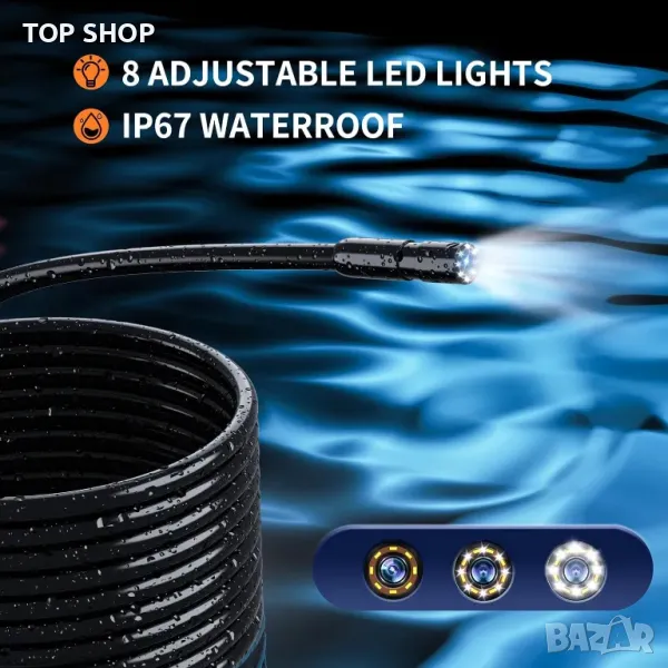 8 регулируеми LED светлини за осигуряване на ясно изображение дори при тъмни условия. Най-доброто разстояние за наблюдение: 1,5 in-5 in, което улеснява проверките. 50-футовият полутвърд кабел е едновременно твърд и гъвкав, за да отговори по-добре на вашите нужди.