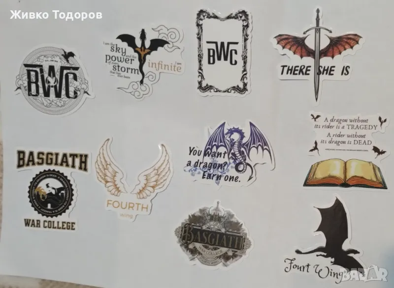 Stickers/Лепенки ''ЧЕТВЪРТОТО КРИЛО/Fourth Wing'' - Цитати и емблеми (за 10 бр) - 3 лв.
