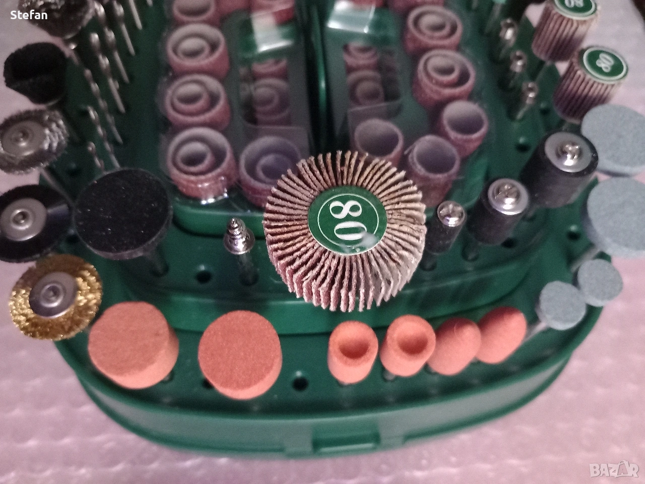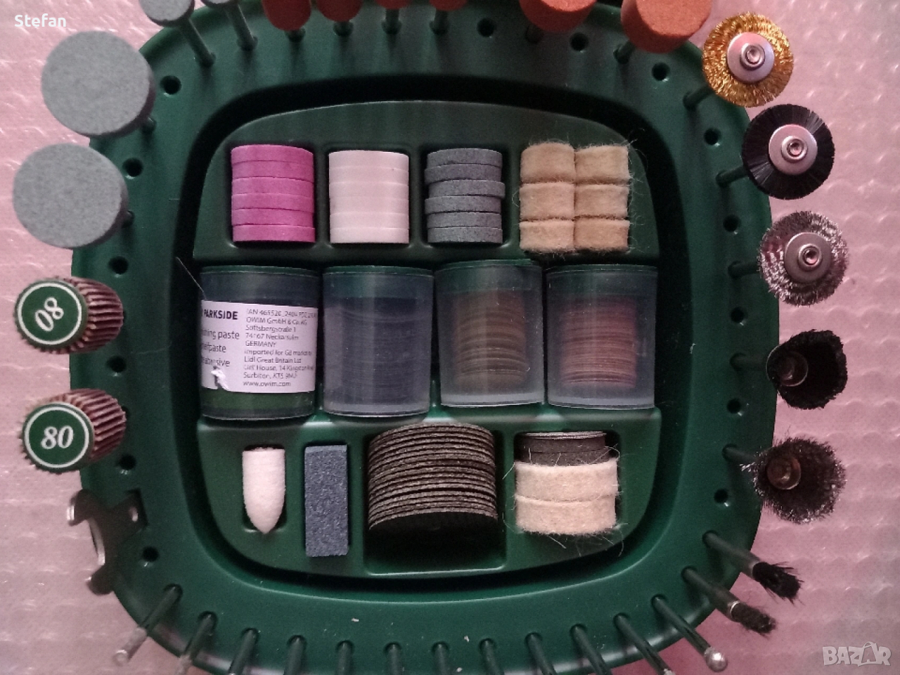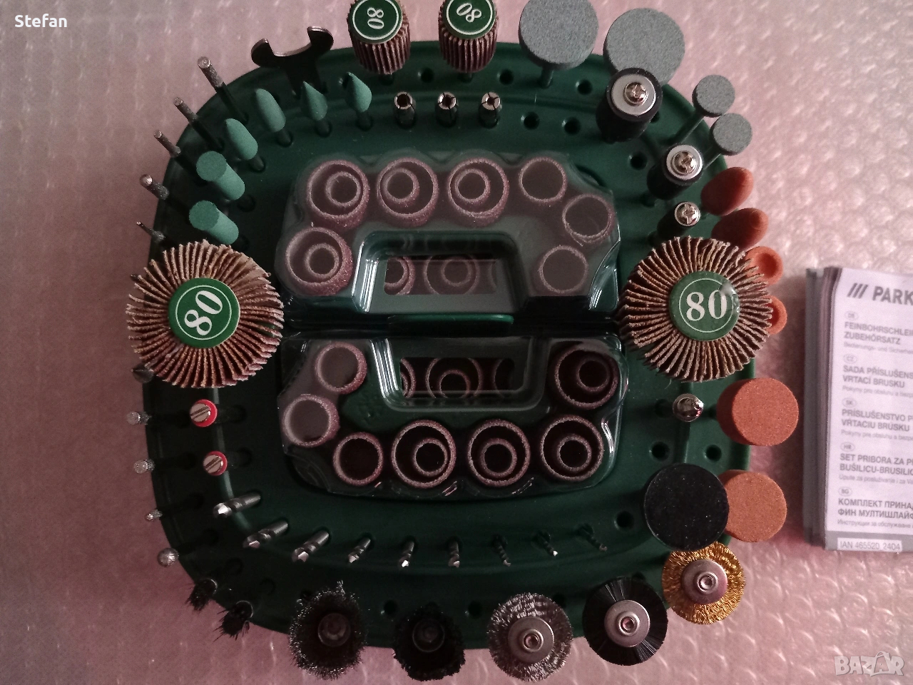 Нови /Неотваряни/Комплекти с Принадлежности за фин Мултишлайф PARKSIDE - Съдържа - 276 части. Въртяща се стойка на 2 нива за удобно вземане на приставките.