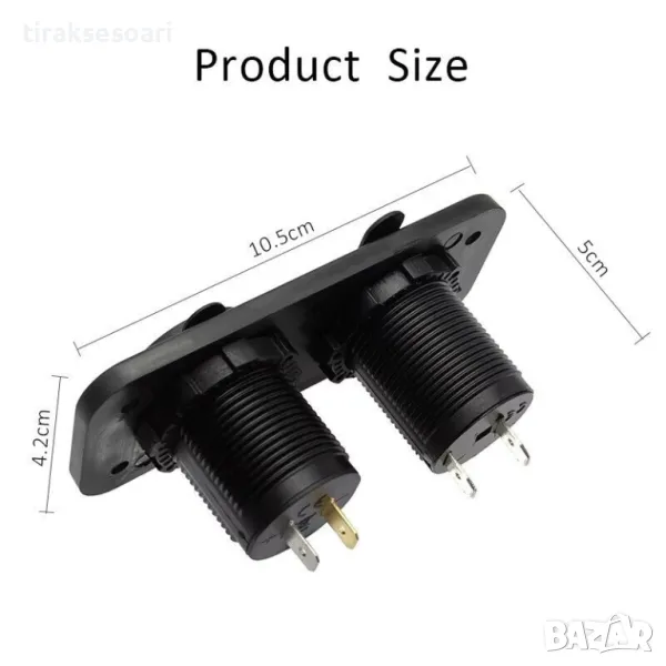 Включва гнездо за запалка на автомобила, двойно USB 2.1A / 5V зарядно.