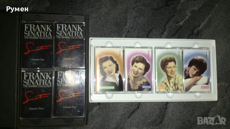 Фирмено записани касети, оформени в кутии на Франк Синатра и Патси Клайн, По 4 броя в кутия. Отделно и 6 фирмено записани на Joe Sample / Crusaders /. За справка по телефона.