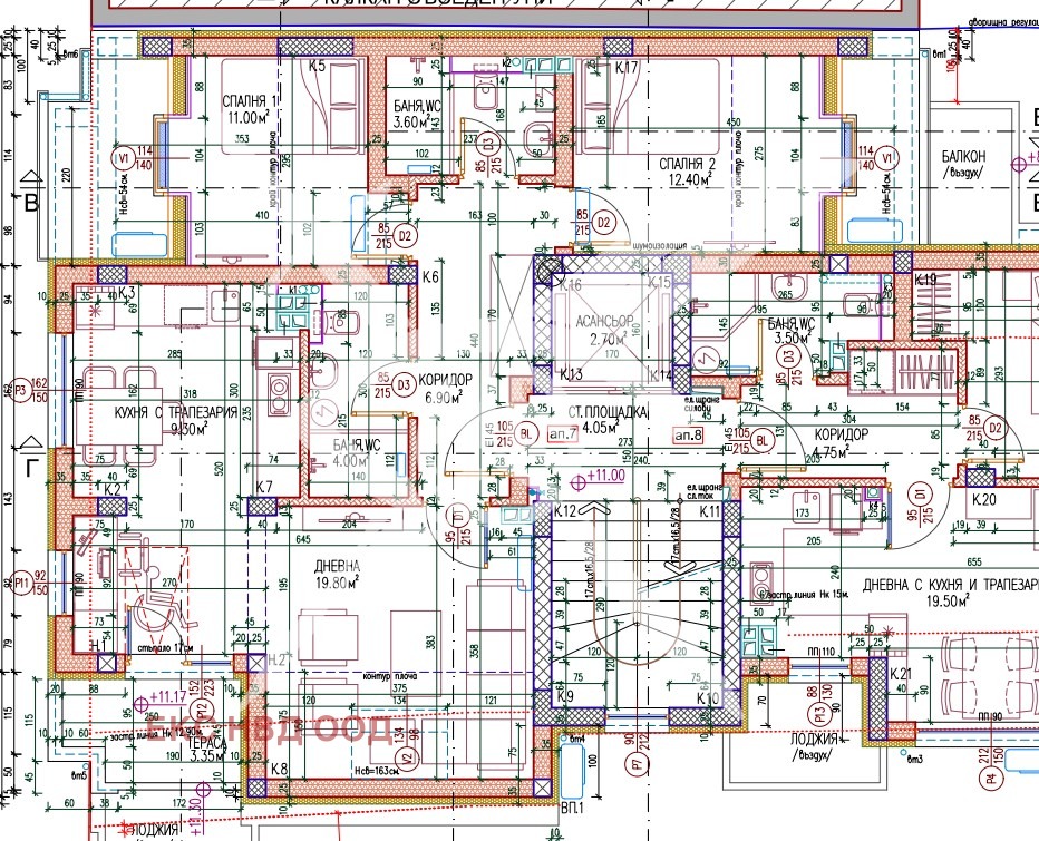 РАЗПРЕДЕЛЕНИЕ: Разполага с площ от 106 кв.м. Апартаментът се състои от коридор, дневна, кухня, две спални, две бани с тоалетна, лоджия, балкон и изба.
