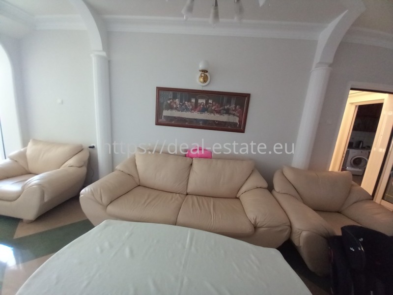 Луксозен тристаен апартамент с Гараж за продажба в кв. Орлова чука на гр. Благоевград. Жилище с чиста площ от 94 кв.м., разположено на втори жилищен етаж в сграда с добре поддържани общи части и контролиран достъп. Състои се от коридор, кухня с всекидневна, две спални с излаз на обща остъклена тераса, баня със санитарен възел, баня. Жилището е обзаведено и оборудвано с висококачествени мебели (холна мебел естествена кожа, вградени гардероби) и висок клас електроуреди, с външна и вътрешна изолация, външни алуминиеви моторизирани щори за вдигане и сваляне, както и вътрешни платови щори, с внимание към всеки детайл.