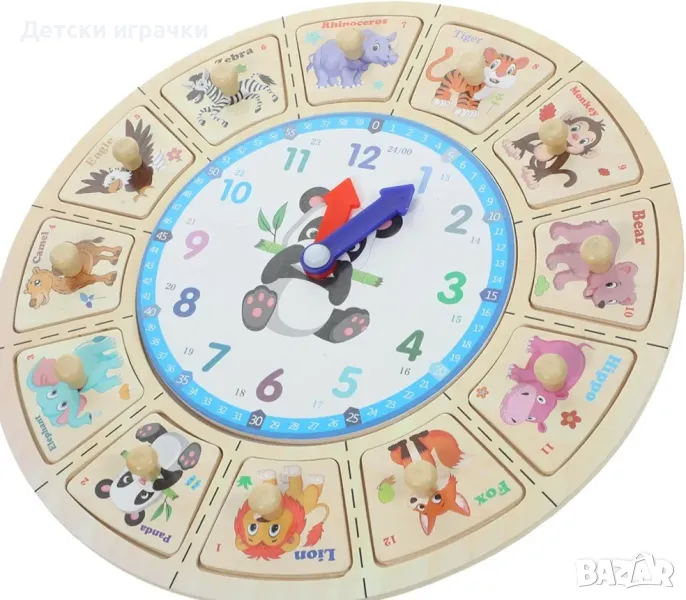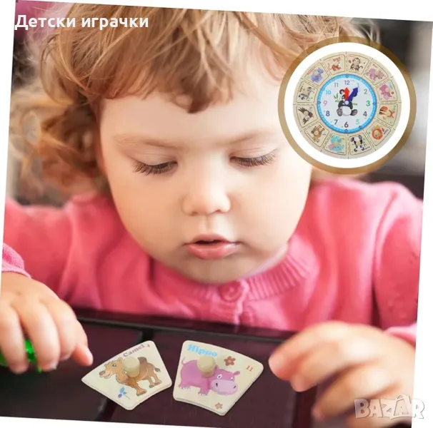Когнитивен часовник - циферблатите на часовника ще помогнат на децата да разберат как да четат времето и да разберат значението на точността в ранна възраст. Включва пъзел с различни животни.