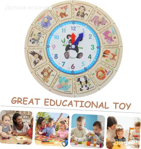 Образователни игри за деца 5-7 години - изработен от дървен материал с добра изработка, детският часовник е здрав и издържа на дълготрайна употреба.