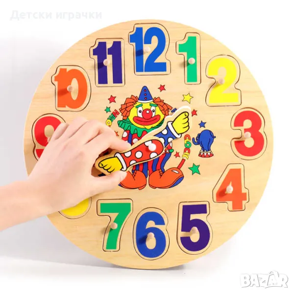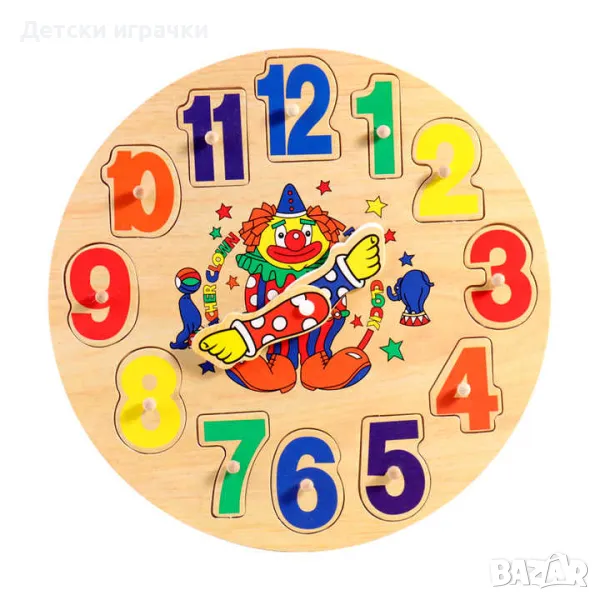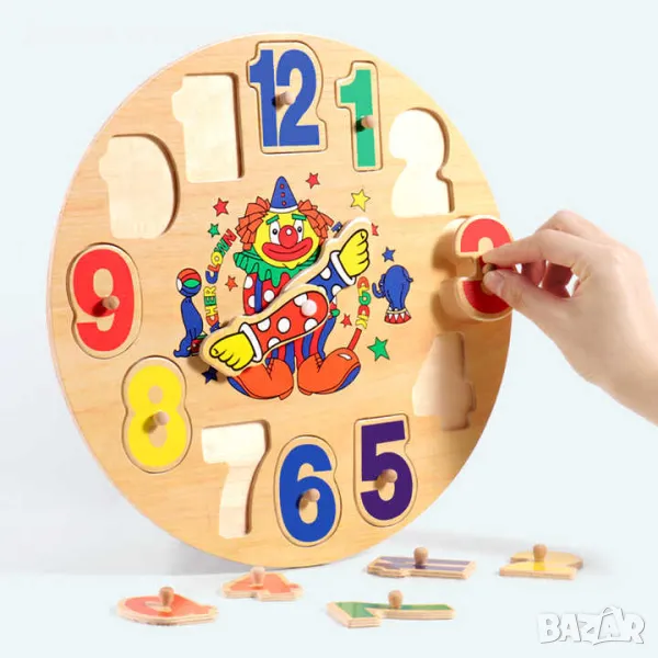 Този пъзел помага на малчуганите да научат цифрите, докато си играят с цветните му елементи, а след това да се запознаят и с часа.