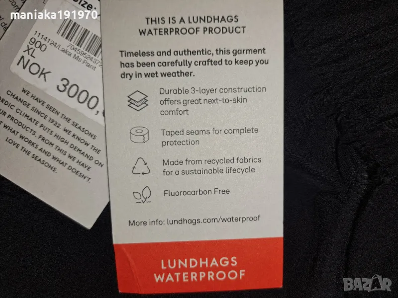 Външен материал: Lundhags Waterproof (LWP) 3-слоен 158 RM (100% полиестер , полиестерна мембрана, bluesign® ).