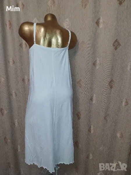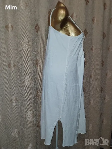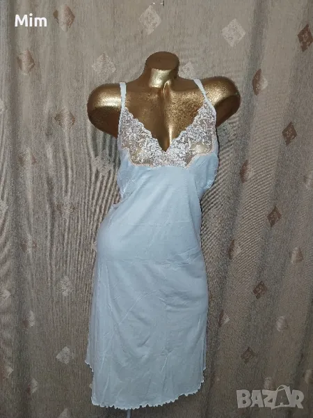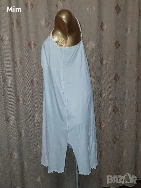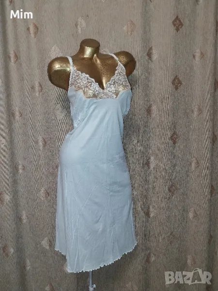 Памучна нощница, с меки чашки на бюста с портокалова мека дантела, регулируеми презрамки, странично е с цепки. гръдна от 60 до 70 см едностранно, ханш 75 до 90 см едностранно, дължина 105 см .Нова без хартиен носител.