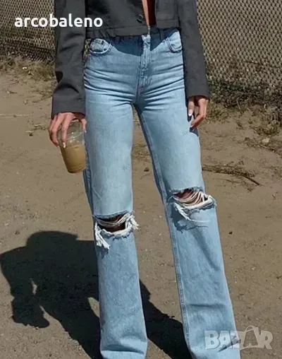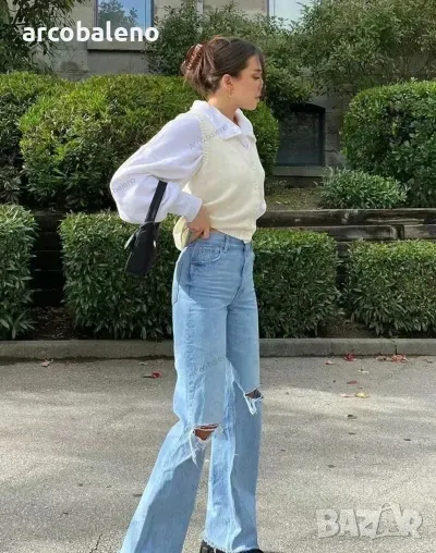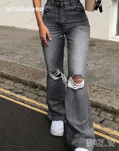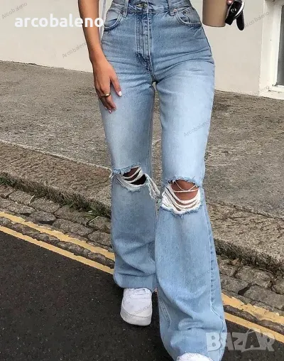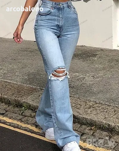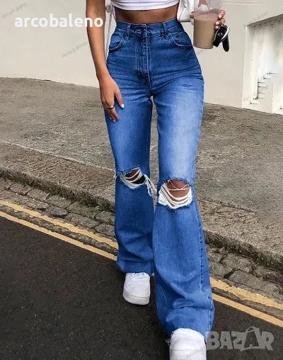 Със средна талия и модерни накъсани детайли, тези дамски широки клоширани дънки предлагат перфектна комбинация от винтидж стил и модерен комфорт. Изработени от тъкана коприна, те имат наклонени джобове, подходящи за всички сезони.