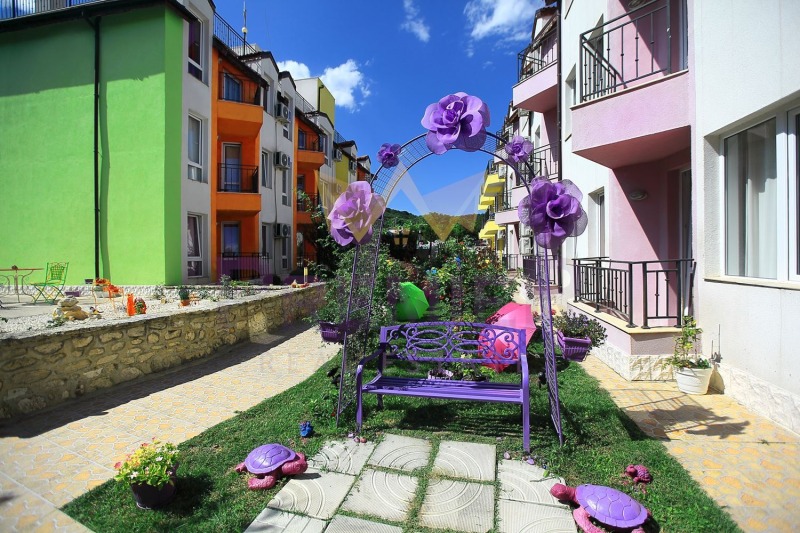 Имоти ПРЕМИЕР представя на Вашето внимание двустаен апартамент в гр. Балчик. Разположен в затворен комплекс, изграден изцяло в артистичен стил на територията на който можете да се насладите на розова градина, външен басейн с минибар, красиво аранжиран двор и много други удобства! Апартаментът се състои от антре, всекидневна с оборудван кухненски бокс, спалня, тераса, комбиниран санитарен възел. Жилището е просторно и светло, предлага се с наличното обзавеждане.