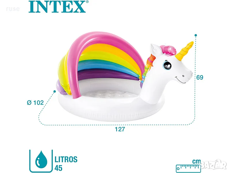 НОВИ! Детски басейн Еднорог Intex 127x102x69см