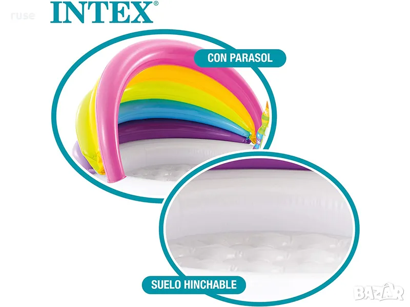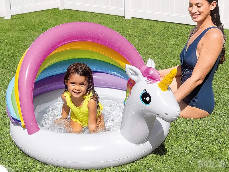 Надуваем басейн Еднорог със сенник, който може да бъде позициониран навсякъде(в двора, градинната, на плажа и други.