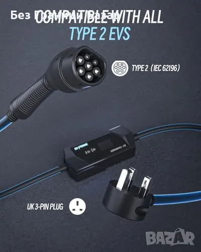 Ново Преносимо Type 2 EV зарядно 3.3kW 5M кабел UK щепсел електромобил