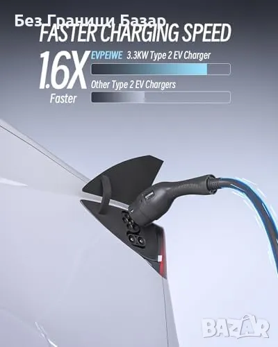 Бързо зареждане – осигурява 3.3kW мощност (230V, 13A), до 1.6 пъти по-бързо от стандартните зарядни.