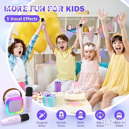 Нова Преносима Bluetooth караоке машина с 2 микрофона и LED светлини