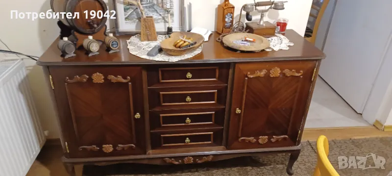 шкаф с три чекмеджета и два бара много запазен естествен фурнир