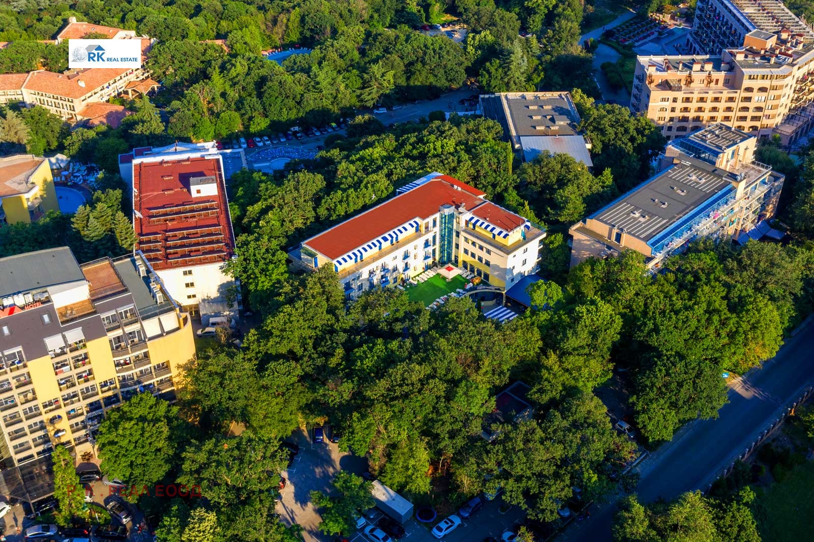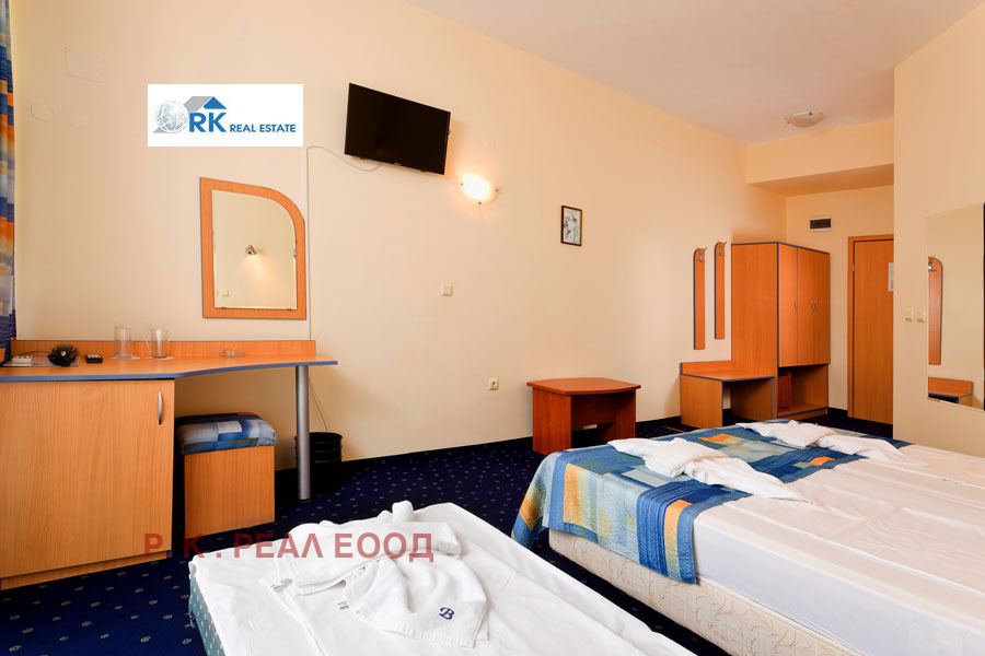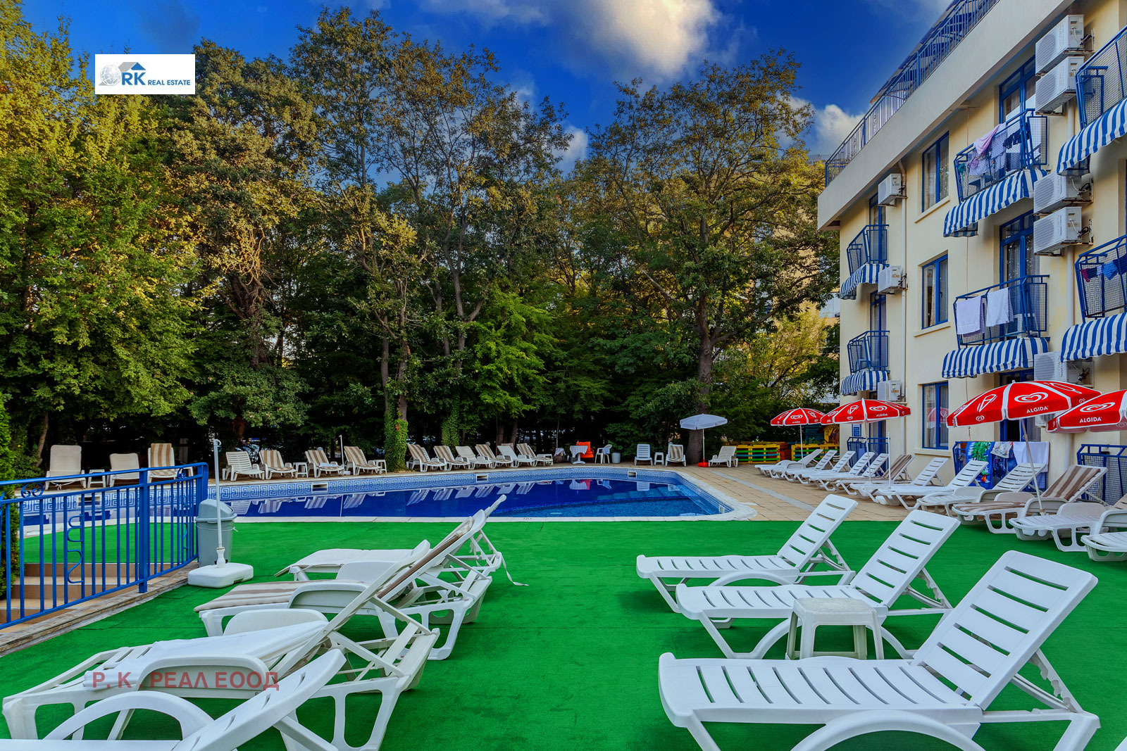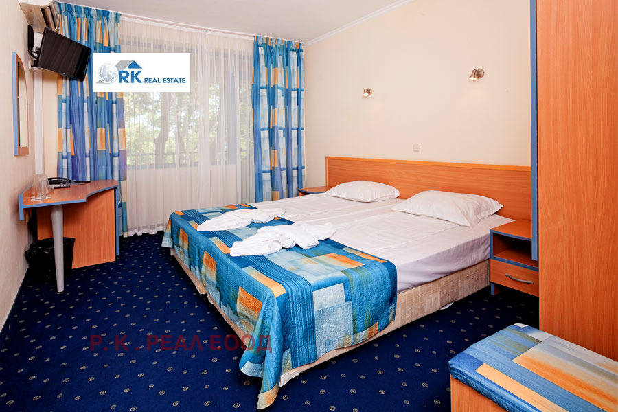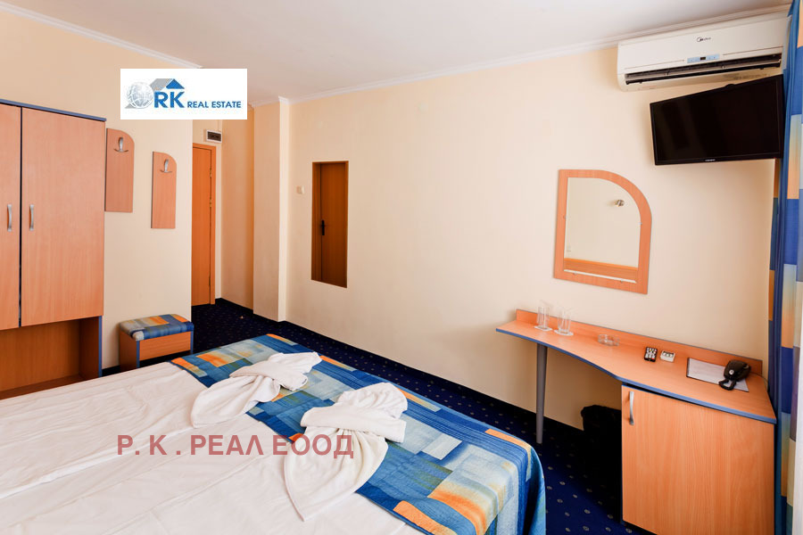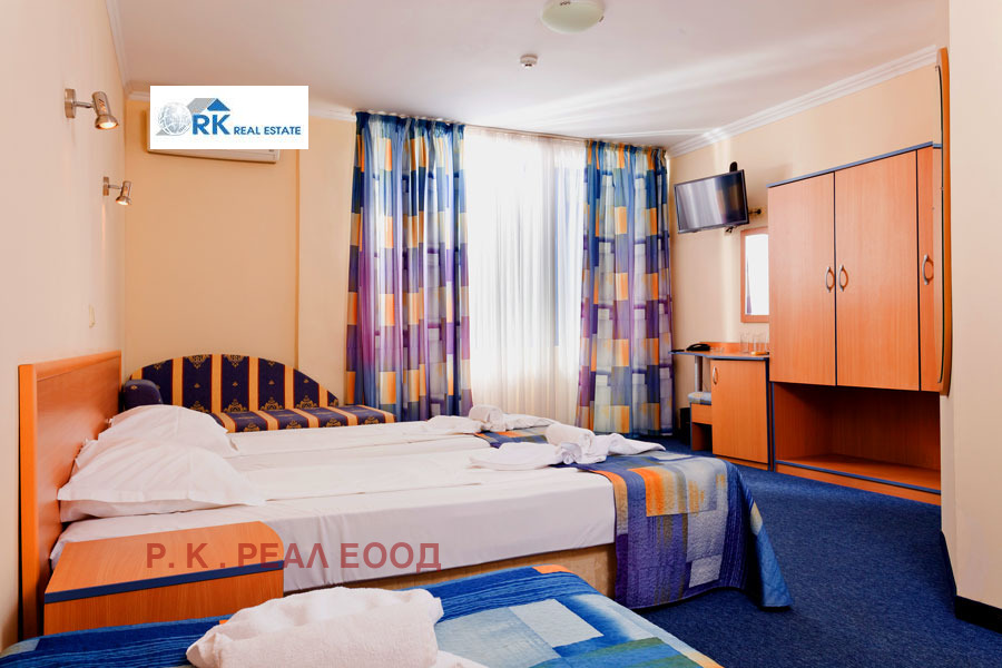Отлична локация само на 300 метра от морския бряг. Центърът на курорта е само на 100 метра от хотела.Хотелът е реновиран напълно през 2007 г.Хотел на Златни пясъци - категория три звезди, РЗП 4500кв.м, на 5 етажа - 80 стай, лоби бар,ресторант с добре оборудвана кухня, басейн 24м/7м, детски кът,; Парцелът върху който е построен хотела е 6000кв.м, към хотела има голям паркинг за около 80-100коли/3000кв.м/ с контролиран достъп,градина.Хотела е оборудван и готов за работа.За контакти +359888425554 Алексей