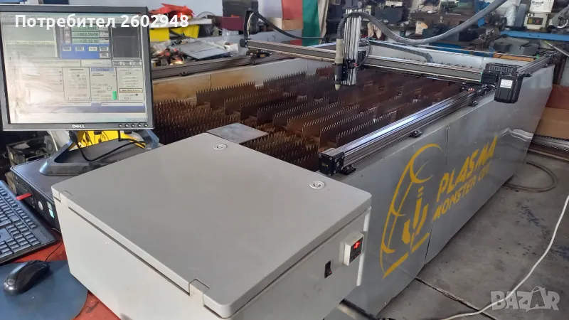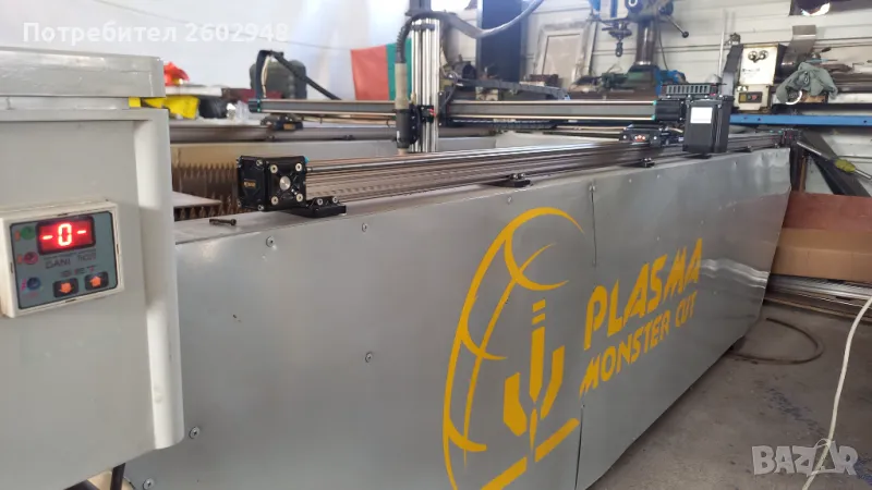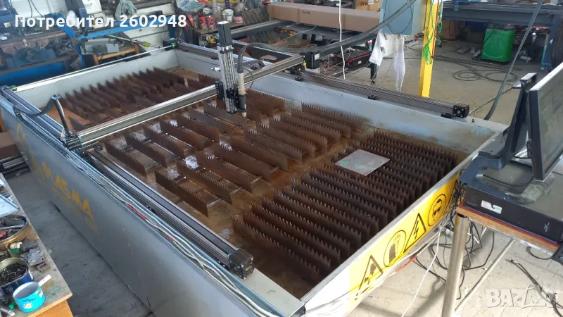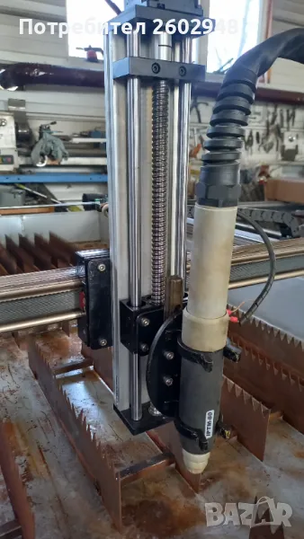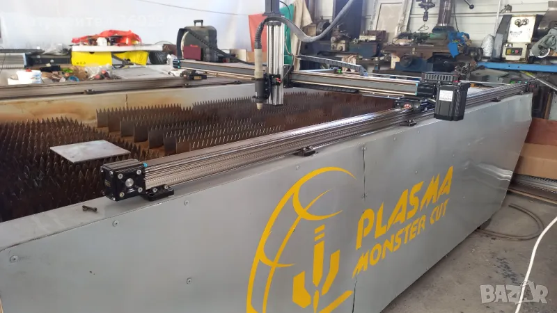 Машината е калибрована и настроена -готова за работа! Машината е пускана само няколко пъти за тестване и настройки!На машината е прикачен трифазен ,нискочестотен , 80 амперов плазмотрон с изходи за старт и THC-ВИСОЧИНЕН РЕГУЛАТОР на машинната горелка! Плазмата реже до 30мм дебелина на черна ламарина по спесификация!Водната маса е също към машината!