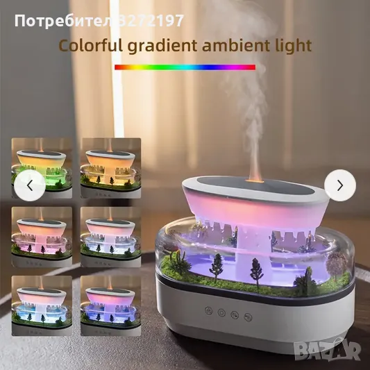 3в1 Лампа,Успокояващ Овлажнител и Дифузер за Етерични Масла с Облачен Дъжд .