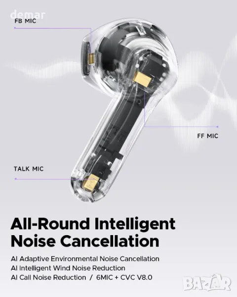 Слушалките SoundPEATS Air5 предлагат лек, ергономичен дизайн за превъзходен комфорт, с компактен калъф за зареждане с 20,5% по-малък от своя предшественик. Задвижвани от аудио платформата S3 на Qualcomm, те осигуряват звук с висока разделителна способност с изключително ниско изкривяване и ефективна работа на батерията. Снабдени със сертификат aptX Lossless и Hi-Res, те осигуряват първокласно аудио качество с 24-битово 96kHz предаване. Bluetooth 5.4 и чипът QCC3091 осигуряват стабилна връзка с ниска консумация на енергия. 13-милиметров високоговорител с композитна биодиафрагма подобрява звука с дълбоки баси, топли вокали и отчетливи високи честоти, докато вентилационните отвори подобряват въздушния поток и яснотата на музиката.