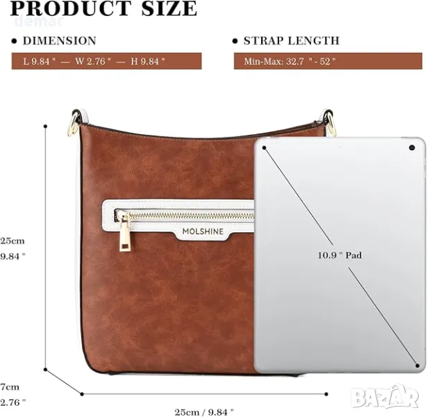 Дамска чанта през рамо molshine с подвижна регулируема широка каишка