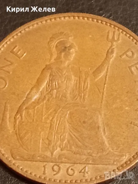 Стара монета 1 пени 1964г. Великобритания Кралица Елизабет втора 41155