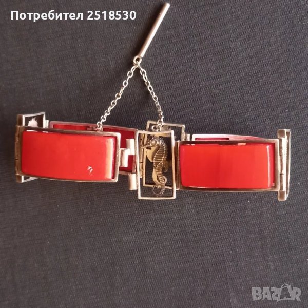 Дебело посребрена гривна " Морско конче"на Jean Painleve (1902-1989) маркирана JHP.Той е Френски режисьор снимал документални филми за природата под вода и известен дизайнер на бижута,имал няколко бутика L'Hippocampe във Париж през 1930-40 години.Традиционно майсторът използвал месинг,галалит и