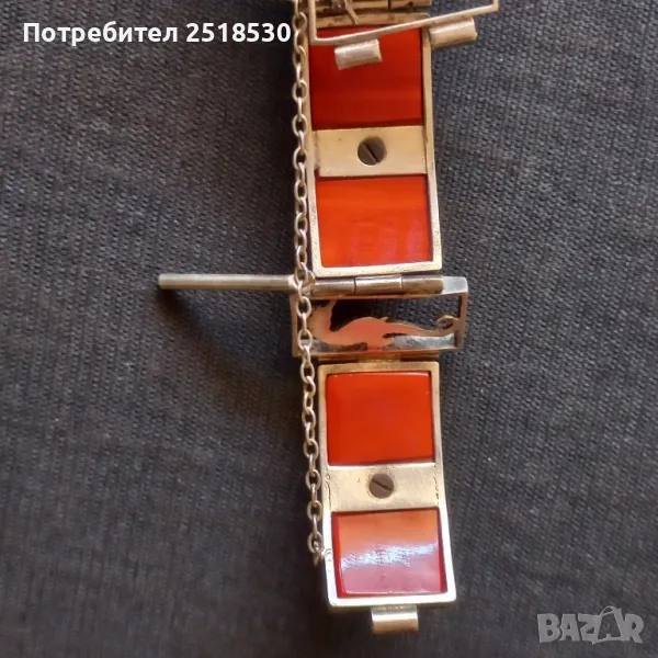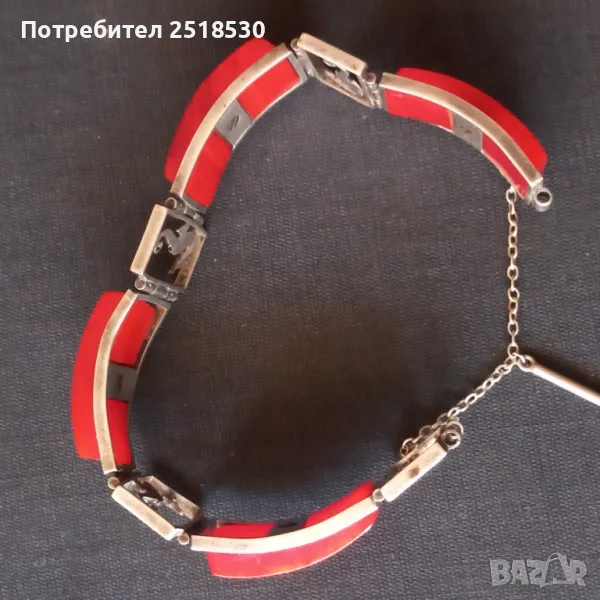 бакелит,една част с дебела посребровка,както е в случая.Винтидж бижутата Painleve се отличават с високо качество и са трудни за намиране и много колекционерски.Тази гривна е в автентичен вид без ремонти.