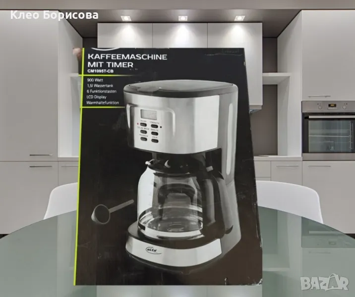 Elta CM1095T-CB е мощна и удобна за употреба, с мощност 900W и капацитет на резервоара за вода от 1,5 литра.