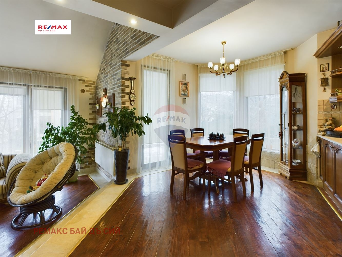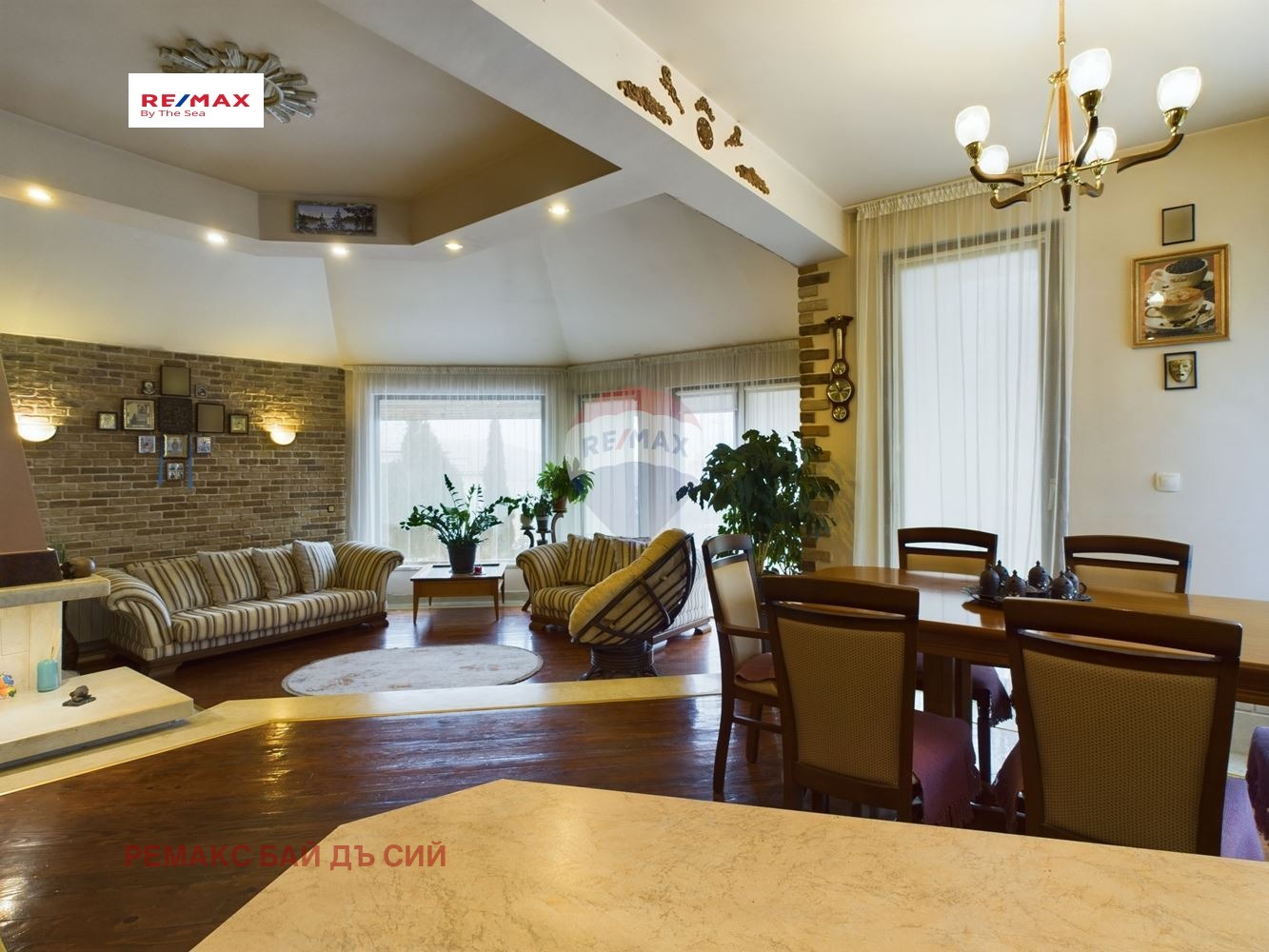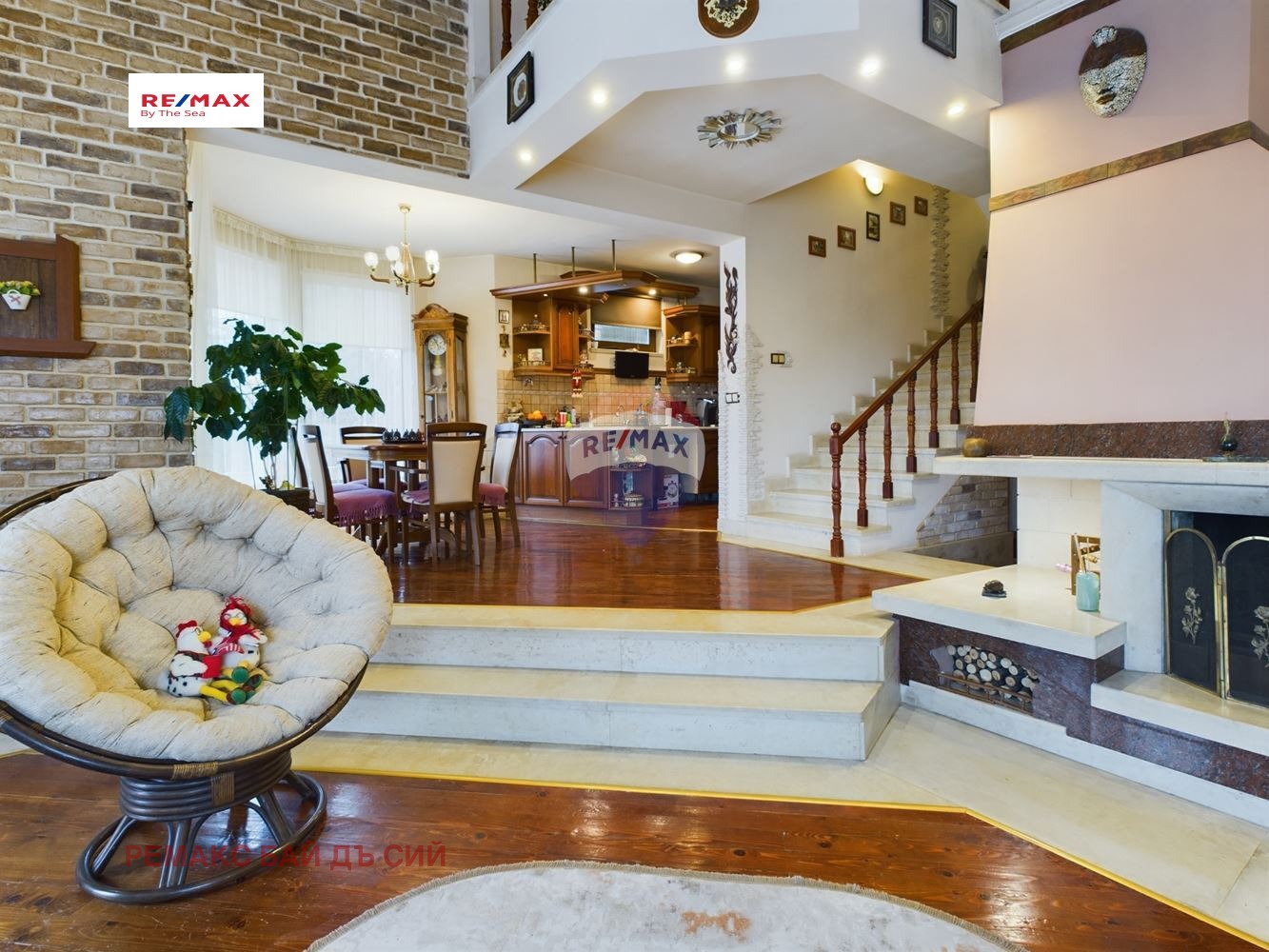 Отоплението и охлаждането на имота се осъществява с термопомпа - енергийно ефективно и екологично решение. Камината в хола допринася за допълнителен уют и топлина през зимните месеци. Подови настилки са от естествено дърво - топлина, комфорт и дълготрайност, стълбището е от мрамор - стил, лукс и здравина. В двора е изграден гараж с площ от 28.10 кв.м.за един голям автомобил и работилница с площ 25.44 кв.м., подходяща за хоби или складово помещение.