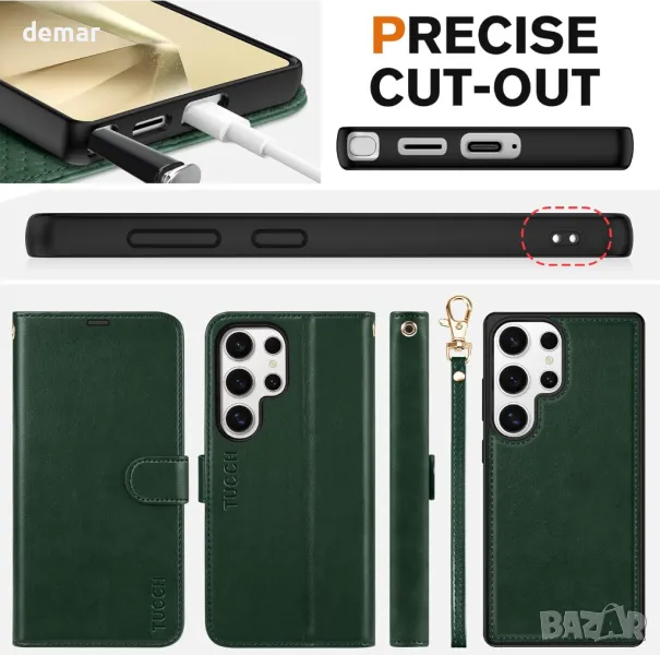 Калъф TUCCH Wallet за Galaxy S25 Ultra (6,9") 2025 5G, 2 в 1 отделящ се фолио калъф, каишка за китка