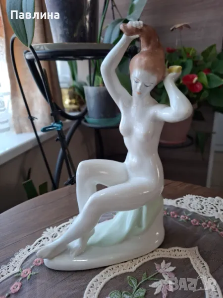 Унгарска порцеланова гола жена - от Jenő Hanzély- унгарски порцелан Aquincum- ръчно рисуван- от 1960-те години