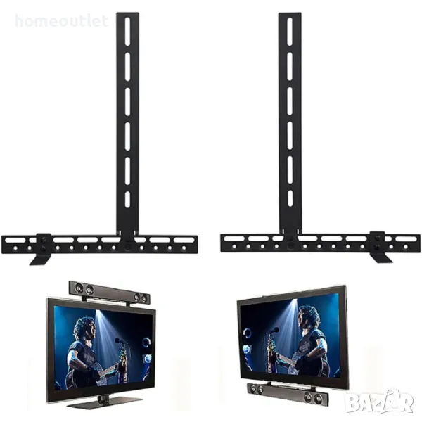 Тези монтажни скоби за звукова лента пасват на почти всеки телевизор, звукова лента и централен високоговорител на системи за домашно кино, благодарение на регулируемите слотове за отвори за болтове.