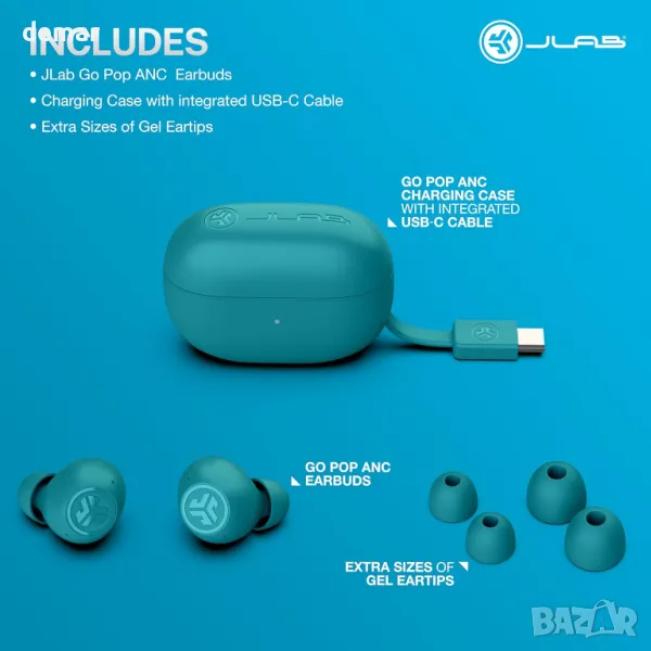 JLab Go Pop ANC Smart активни слушалки с шумопотискане, Bluetooth с микрофон, IP55