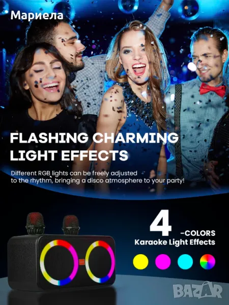 Тонколона с два безжични микрофона и привличащи вниманието LED светлини за незабравими събирания .