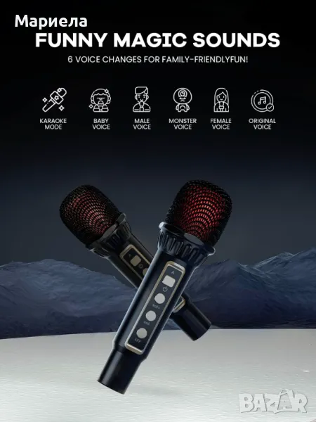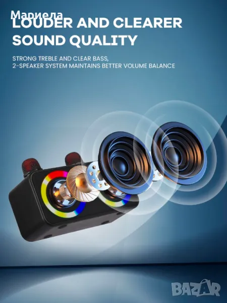 Bluetooth Колона с 2 микрофона 15W / Караоке Система с 2 Микрофона /