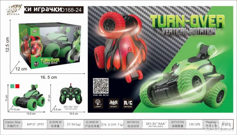 Over 360 Turn-over 360 Radio Control Car е идеалният спътник за малките приключенци. Предназначено за деца на възраст от 5 до 7 години, това превозно средство с дистанционно управление предлага вълнуващо и безопасно изживяване при игра. Неговият здрав и цветен дизайн привлича вниманието на най-малките, а функционалността му позволява изненадващи завои и каскади.