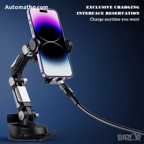 Регулиране в множество ъгли: Тази поставка за мобилен телефон може да се регулира нагоре и надолу под различни ъгли. С въртящата се на 360° глава може да се регулира до удобен ъгъл по желание за по-удобно гледане и навигация.