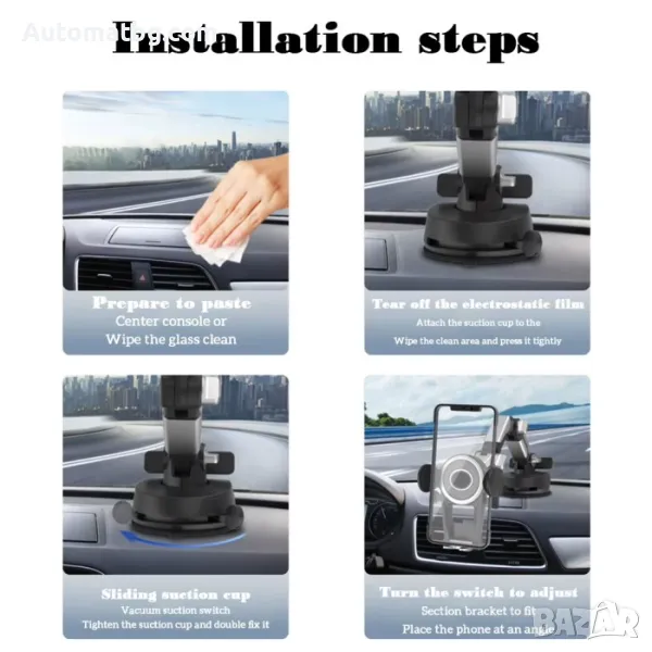 Здравата вендуза може лесно да се монтира на таблото на автомобила, с противоплъзгащ и удароустойчив държач за мобилен телефон.