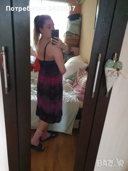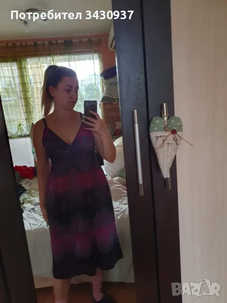 Рокля с v- образно деколте. Универсален размер- от S до L. Лека ефирна рокля. Може и без сутиен да се носи