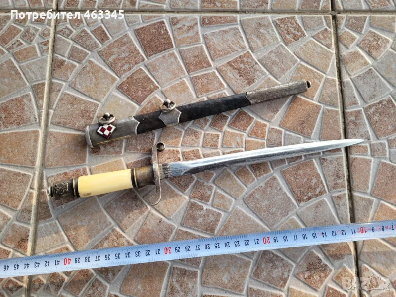 Полски пилотски кортик от първото социалистическо издание - обр. 1956. Острието е в отлично състояние, с непокътната никелировка, маркирано. На дръжката има новия, за него време, полски герб. Ножната е без огънато и подбидо с нормалните следи за възрастта си. Прекрасен колекционерски екземпляр, без липси. Бутонът работи