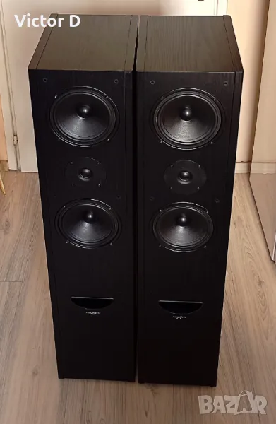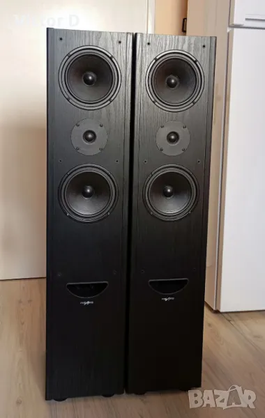 Mасивни подови тонколони на GRUNDIG.Най-високия модел от серията.Перфектни технически с идеални говорители.Добро визуално състояние.Решетките липсват. Размери 23.5 x 107 x 32 сm.Тегло 20 кг.-едната.Произведени в Германия.Type: 2.5 way bass reflex, floorstanding speaker.Low frequency: 2x 7 инча.Power handling (nominal/music): 150/230 Watt Efficiency: