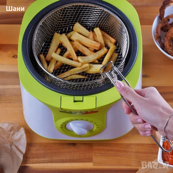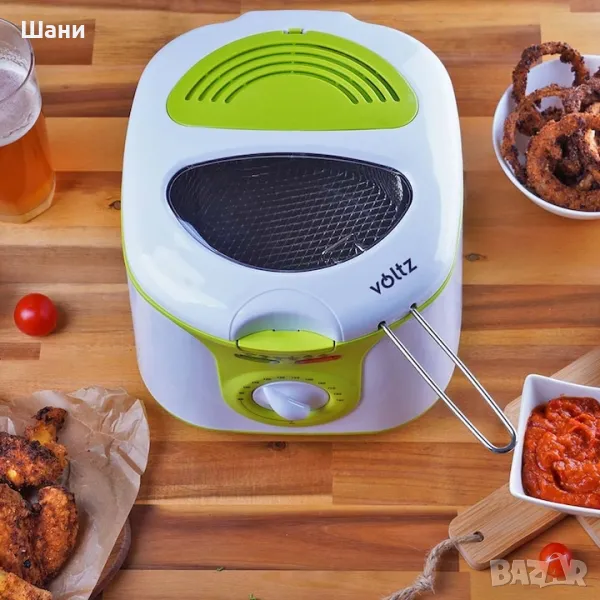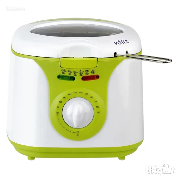 Фритюрник Voltz V51980A, 2 литра, 1300W, 80-190 C, Незалепващ съд, Бял/зелен