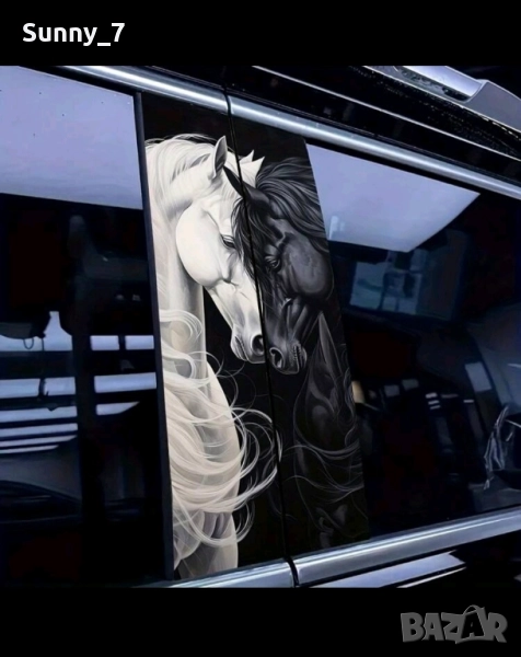 Комплект-2бр. Водоустойчиви PVC винилови стикери за кола устойчиви на надраскване.*Слънцезащитни декоративни стикери,подходящи за B-колони и врати.*Цена-20 лв.за комплект от 2 бр.стикери