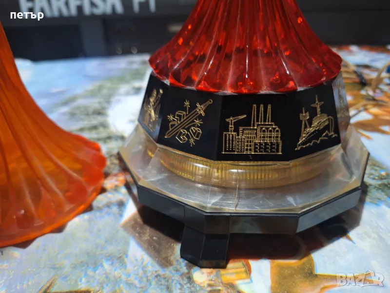 Лампата е в добро състояние. Има счупен връх и лека пукнатина.Давам резервен с ракета.Работеща.Рядка руска вещ за колекция. САМО лично предаване.