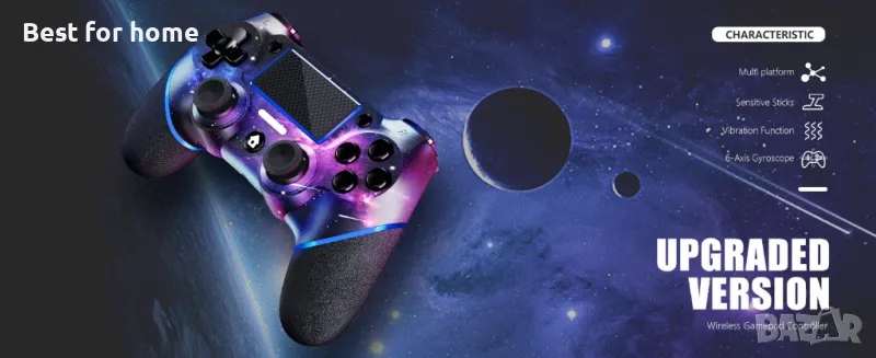 Безжичен контролер AceGamer за PS4, персонализиран дизайн на Purple Galaxy с противоплъзгащи се ръкохватки от двете страни, Turbo функция и 3,5 mm аудио жак, бонус 2 ръкохватки за палеца